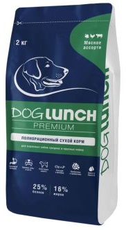Dog Lunch PREMIUM корм для взрослых собак Средних и Крупных пород (Мясное ассорти)